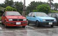 これはワンオーナーで処分を考えていた方から、このツーリングの幹事さんが一時的に譲り受けたものです。40歳以上の方なら記憶があるかと思いますが、発表当時にセールスカラーになっていたセイシェルブルーのハッチバックで、なんとMT車。僕のイルムシャーより1年前の型です。自分で言うのもなんですが、あれから25年を経たこのツーショットはかなり奇跡的な1枚かもしれないです。